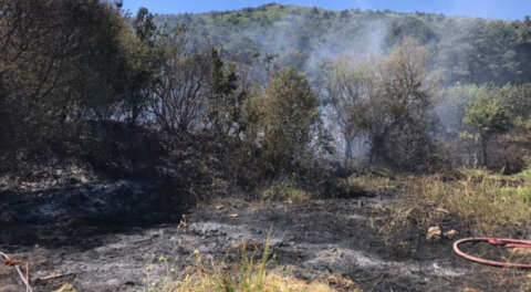 Bursa'da Uludağ'ın eteklerinde çıkan ot yangını havadan ve karadan müdahaleyle söndürüldü.