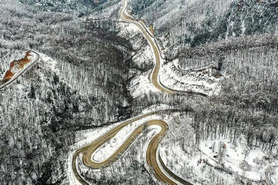Uludağ'ın yamaçlarındaki kıvrımlı yollar karlı ormanlarla bütünleşti