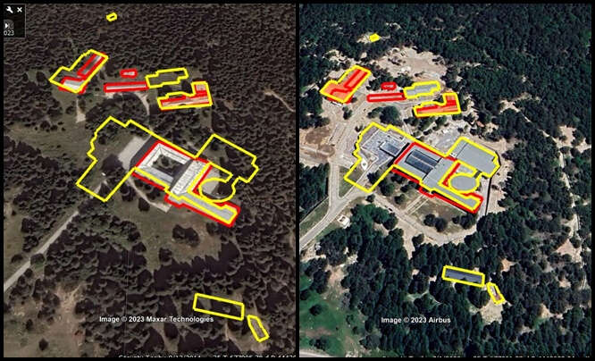 Sanatoryum alanının 2014 ve 2023 yılına ait uydu görüntüleri