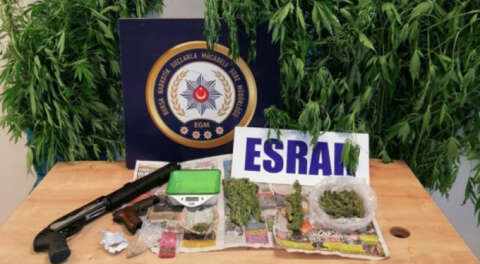 Yakalanan 3 zanlının ev ve araçlarındaki aramalarda, çok miktarda Hint keneviri, içime hazır kurutulmuş esrar, hassas terazi, ruhsatsız tabanca ve tüfek ile bu silahlara ait fişekler ele geçirildi.