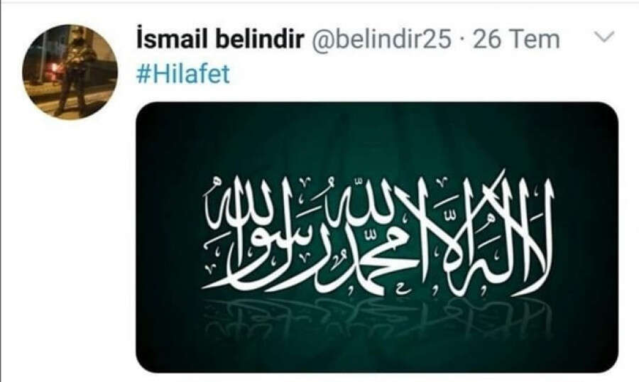 Bursa Valiliği, 26 Temmuz 2020 tarihinde @belindir25 kullanıcı hesabından Hilafet etiketiyle Kelime-i Tevhid görselli paylaşımda bulunan, Çarşı ve Mahalle Bekçisi olarak görev yapan İsmail Belindir hakkında soruşturma açıldığını ve soruşturmanın halen devam ettiğini duyurdu.