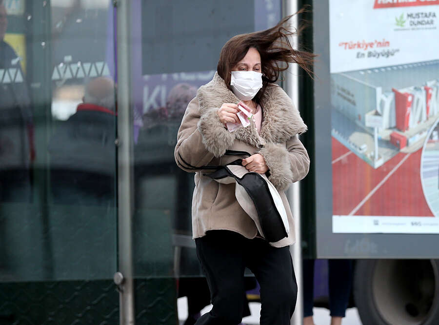 Haşim İşcan Caddesi'nde birçok vatandaş şiddetli rüzgar nedeniyle yürümekte güçlük çekti.