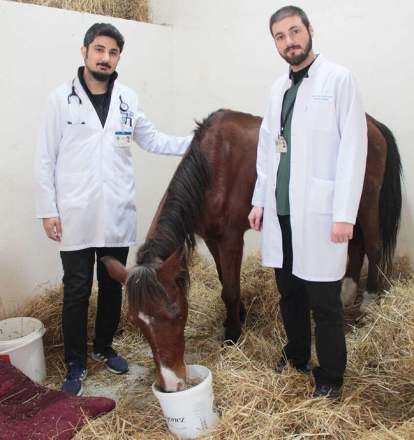 Dülger, atın önüne konulan yiyecek ve suya adeta saldırdığını dile getirerek, "Sıvı takviyesi yaptık ve serum tedavisi uyguladık. Verdiğimizi bir takım ilaçlara olumlu yanıtlar aldık. Cerrahi Ana Bilim Dalı'ndan veteriner hekimler de gözüyle ilgili tedaviyi yapıyor. Bir görme kaybı yok. Göz çevresindeki dokularda bir dejenerasyon var. İyiye gidiyor." diye konuştu.