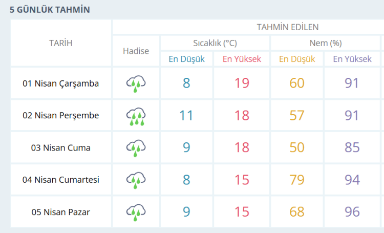 Yağışlar çoğunlukla yağmur ve sağanak yağış şeklinde olacak. Ancak rakım 1500-1600 metrenin üzerinde olan yerlerde karla karışık yağmur ve kar yağışı şeklinde görülebilir.