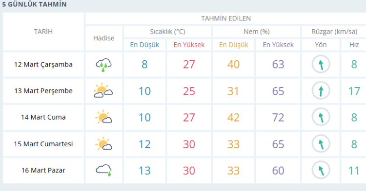 Bursa'da önümüzdeki 5 günlük hava tahmini şöyle: