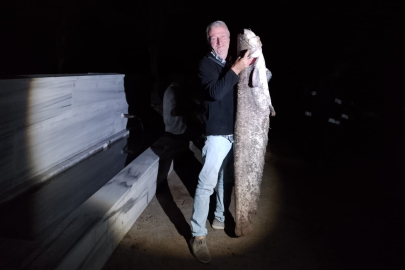 Gece saatlerinde olta atan Ergin'in oltasına bir anda balık denk geldi. Balığı sudan çıkarmak için büyük çaba harcayan Ergin, bu kadar büyük bir balıkla ilk kez karşılaştığını söyledi. Yayın balığı, boyu ve ağırlığıyla görenleri hayrete düşürdü.