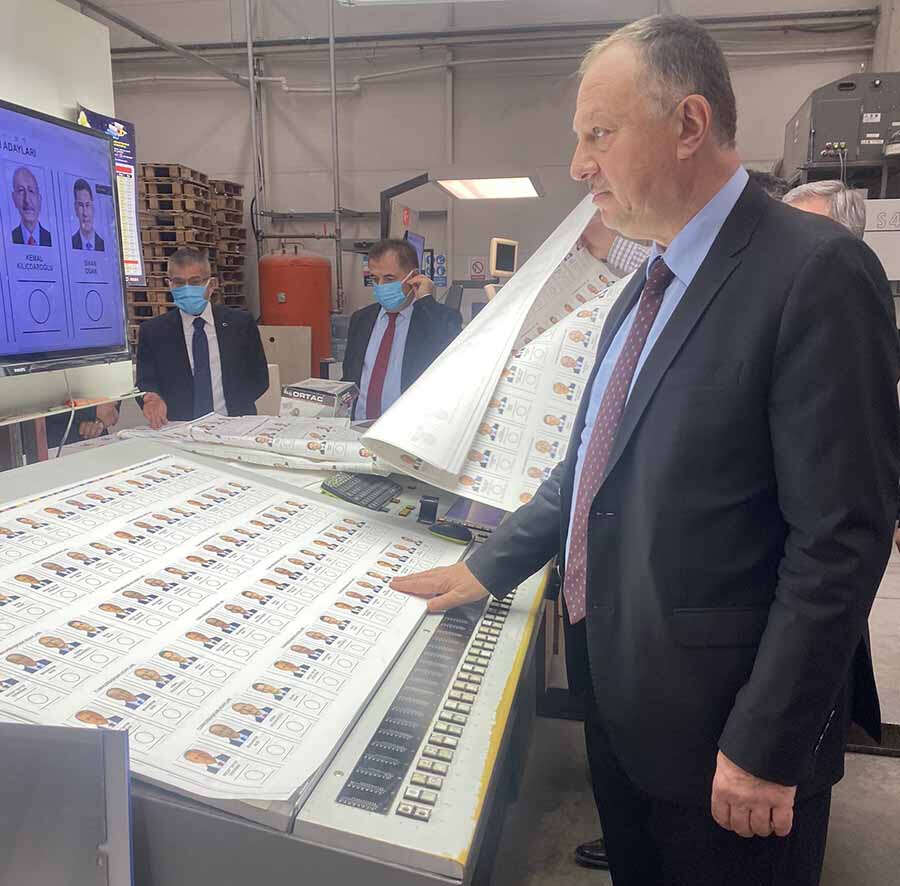 Özel ise, "Cumhurbaşkanı Seçiminde kullanılacak oy pusulasının basım yerinde YSK üyelerimiz ve siyasi parti temsilcilerimizle birlikte hazır bulunduk, uygun olan oy pusulasının basım işlemleri başlatılması talimatı verilmiştir. Hayırlı olsun" ifadelerini kullandı.