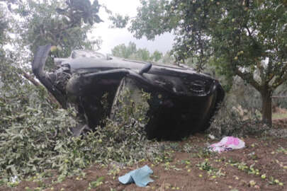 Zeytinliğe devrilen otomobildeki 3 kişi yaralandı