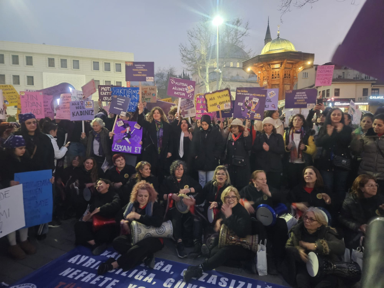 Bursa'da 8 Mart Dünya Kadınlar Günü'nde kadınlar meydanlardaydı. Her yıl olduğu gibi Şehreküstü Meydanı'ndan Kent Meydanı'na yürüyen kadınlar, sloganlar, ıslıklar ve halaylarla günü kutladı.