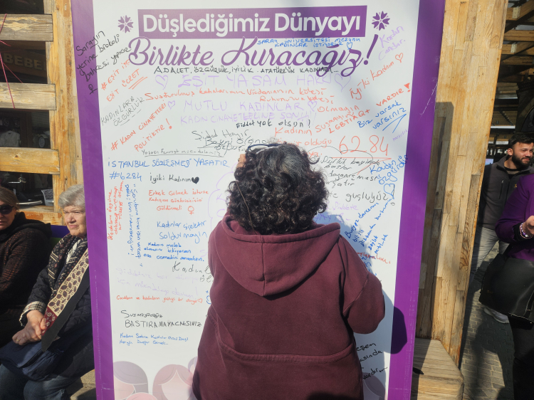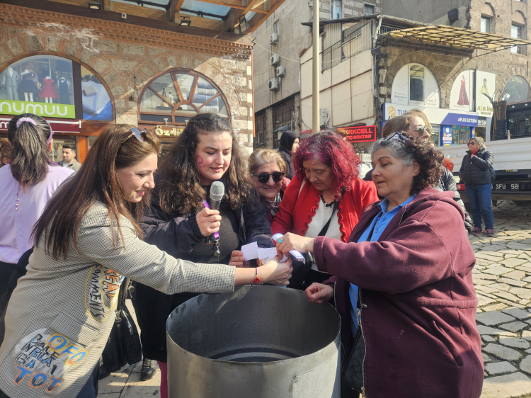 Bursa'da 8 Mart Dünya Kadınlar Günü'nde Cumhuriyet Caddesi'nde yürüyüş ve basın açıklaması düzenlendi. Kadınlar, mesaj duvarına dileklerini, kuyuya ise yaşadıkları kötü deneyimleri yazarak attı.