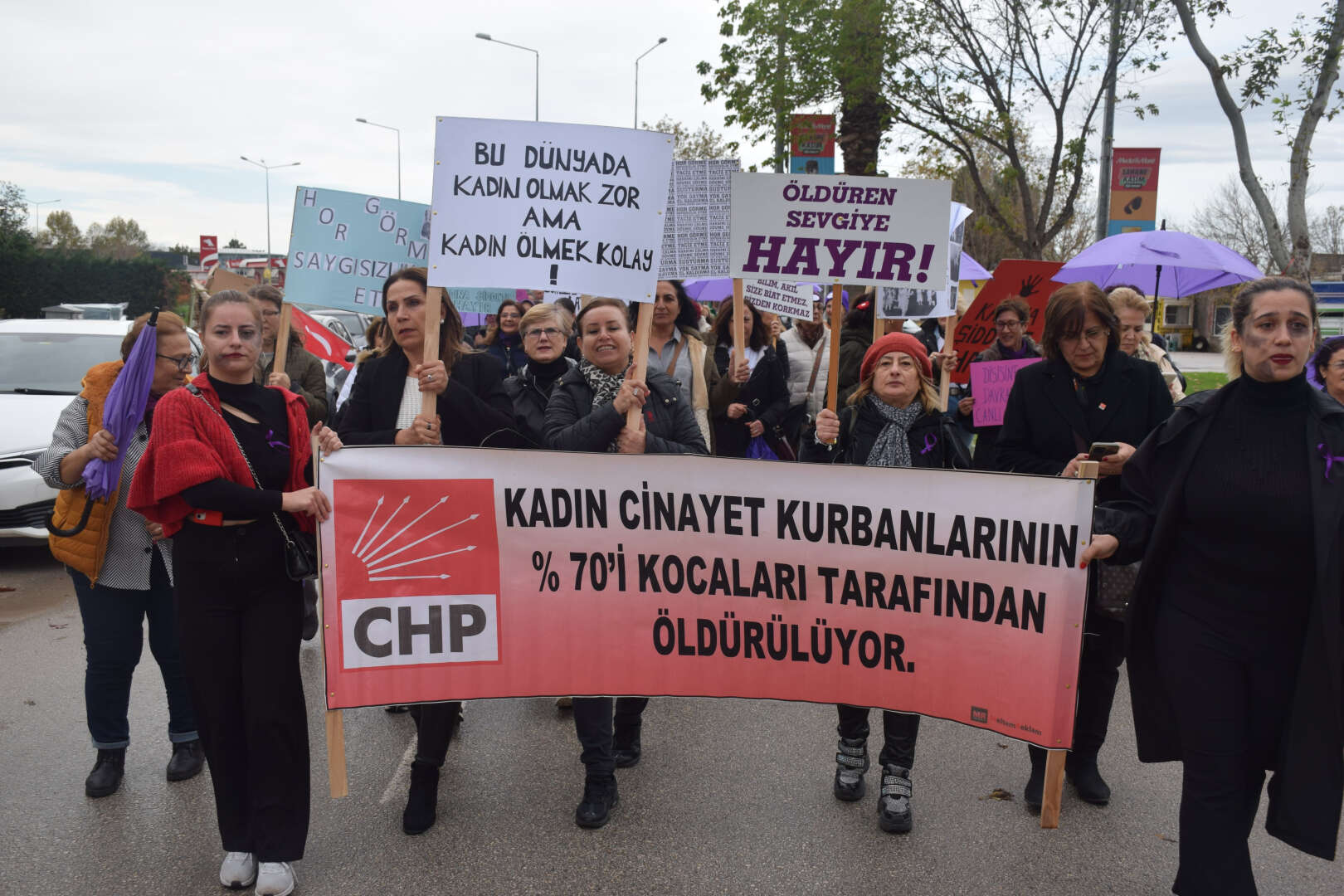 CHP Mustafakemalpaşa İlçe Başkanlığı önünde sonlanan yürüyüş sonrası CHP Bursa İl Kadın Kolları Başkanı Aysel Okumuş ve ilçe kadın kolları başkanlarının ortaklaşa yaptığı açıklama şu şekilde: