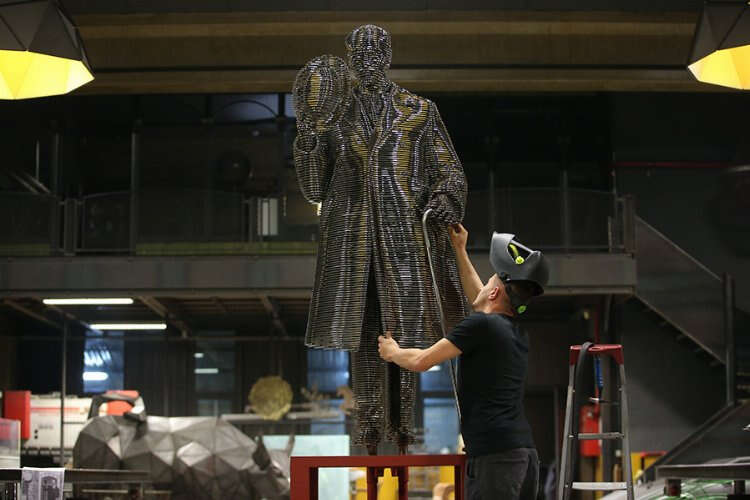 Bu çalışmada, Atatürk'ün fotoğraftaki fiziksel özellikleri bilgisayar programları yardımıyla analiz edilerek heykel formunda olması ve çelik dilimler arasındaki boşluklarla bütünlük oluşturması için 1,95 metre boyuna ölçeklendirildi.