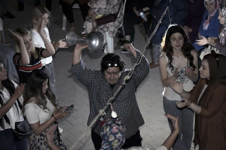 Kına gecesi sonrası gelinin bazı arkadaşları kılık değiştirip gelin ve damat oluyor. Gelin tarafı darbuka ve benzeri müzik aletlerini çalarak damadın evine gidiyor.