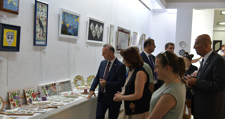 Konuşmalardan sonra yapılan açılışın ardından sergiyi gezen sanatseverler kursiyerlerin yıl boyunca büyük emek vererek ortaya koydukları eserleri ilgiyle incelediler.