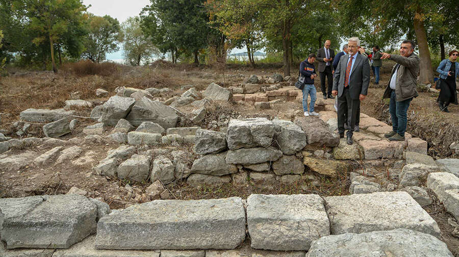 2021 yılında başlayan antik tiyatro ve 2016 yılından günümüze devam eden Kız Ada’daki kazı çalışmalarında önemli bulgular ortaya çıkarken, Nilüfer Belediye Başkanı Turgay Erdem de, Başkan Yardımcıları Zafer Yıldız ve Remzi Çınar ile birlikte Bursa Uludağ Üniversitesi Fen Edebiyat Fakültesi Arkeoloji Bölümü Öğretim Üyesi Prof. Dr. Derya Şahin’in başkanlığındaki çalışmaları yerinde inceledi. Başkan Erdem, antik tiyatro alanı ve Kız Ada’ya giderek, Prof. Dr. Derya Şahin’den detaylı bilgi aldı.