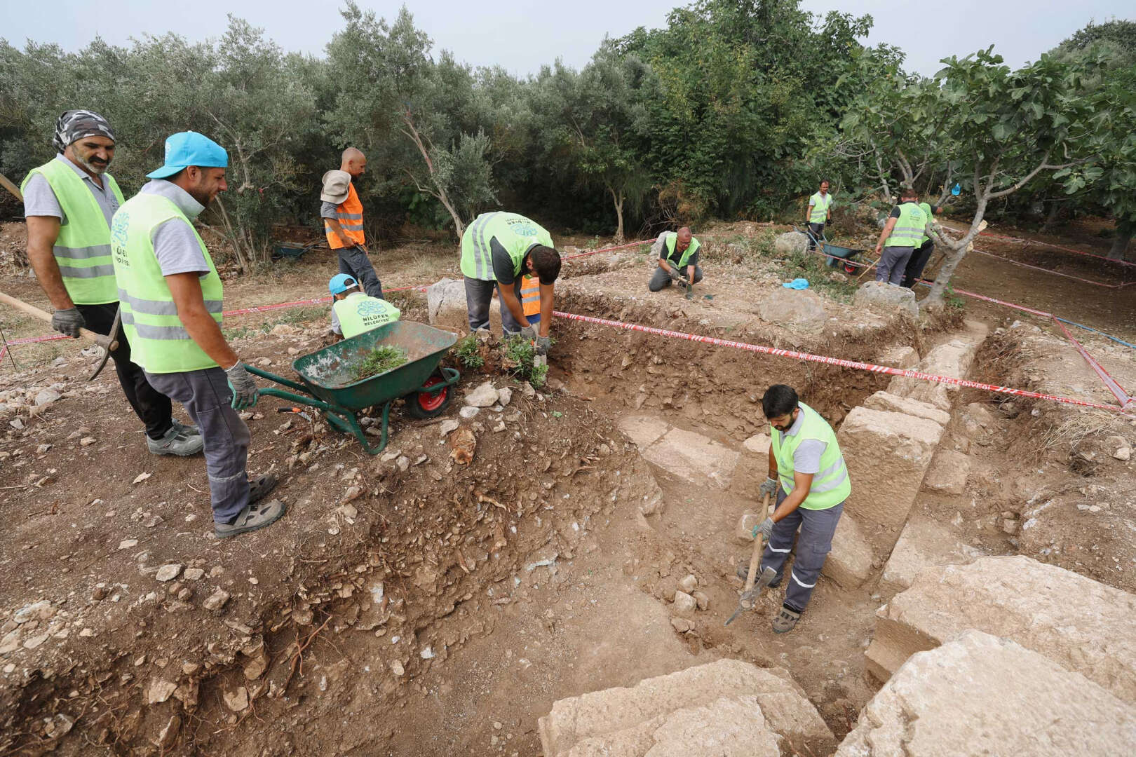 Nilüfer Belediye Başkanı Turgay Erdem, Gölyazı’da devam eden antik tiyatro ve sıbyan mektebindeki kazı ve restorasyon çalışmalarını yerinde inceledi.