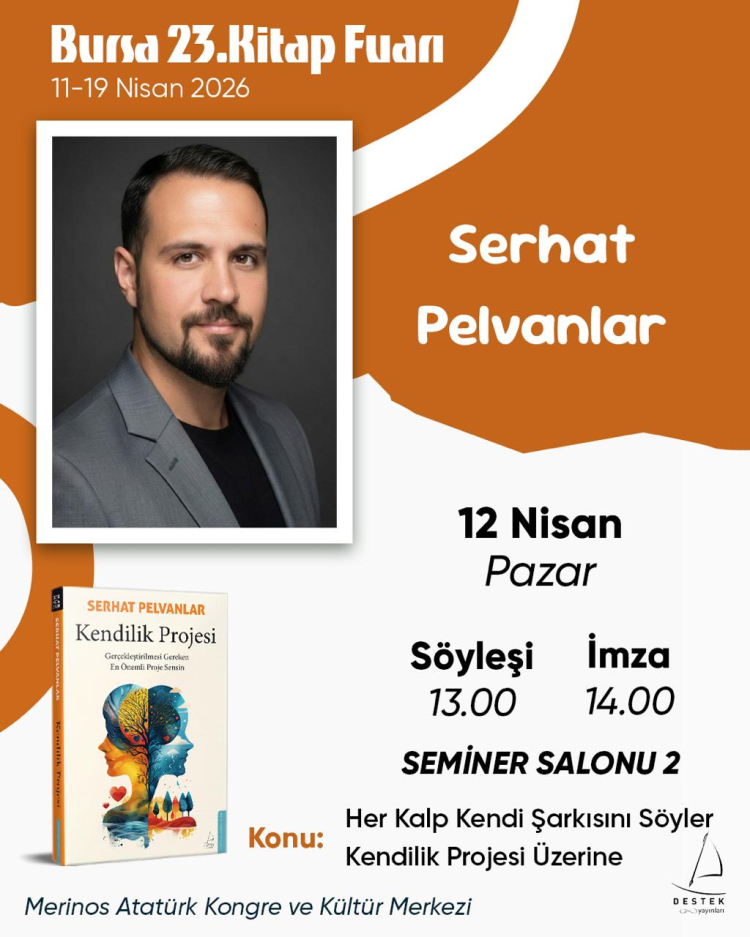 Yazar Serhat Pelvanlar da “Her Kalp Kendi Şarkısını Söyler – Kendilik Projesi Üzerine” konulu söyleşisiyle yarın (12 Nisan) saat 13:00’de 2 numaralı Seminer Salonu’nda okurlarıyla buluşacak. Söyleşi ardından saat 14:00’de Destek Yayınları Standı’nda “Kendilik Projesi” isimli kitabını imzalayacak olan Yazar, bu eserinde, özgün bir hayatın klişeleştirilmiş başarı dayatmalarıyla, popüler kişisel gelişim reçeteleriyle değil, özgür bir iradeyle belirlenen “içsel bir sağlamlıkla” gerçekleşebileceğini anlatıyor.