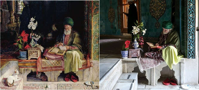 "Resm-i Mekan Projesi" kapsamında yeni çalışması için John Frederick Lewis'in 1869 tarihli "The Commentator On The Koran" adlı eserini seçen Bursalı fotoğraf sanatçısı, aynı mekanda resimdeki materyal ve kıyafetlerin benzerleriyle model Mustafa Akcan'ın fotoğrafını çekti.