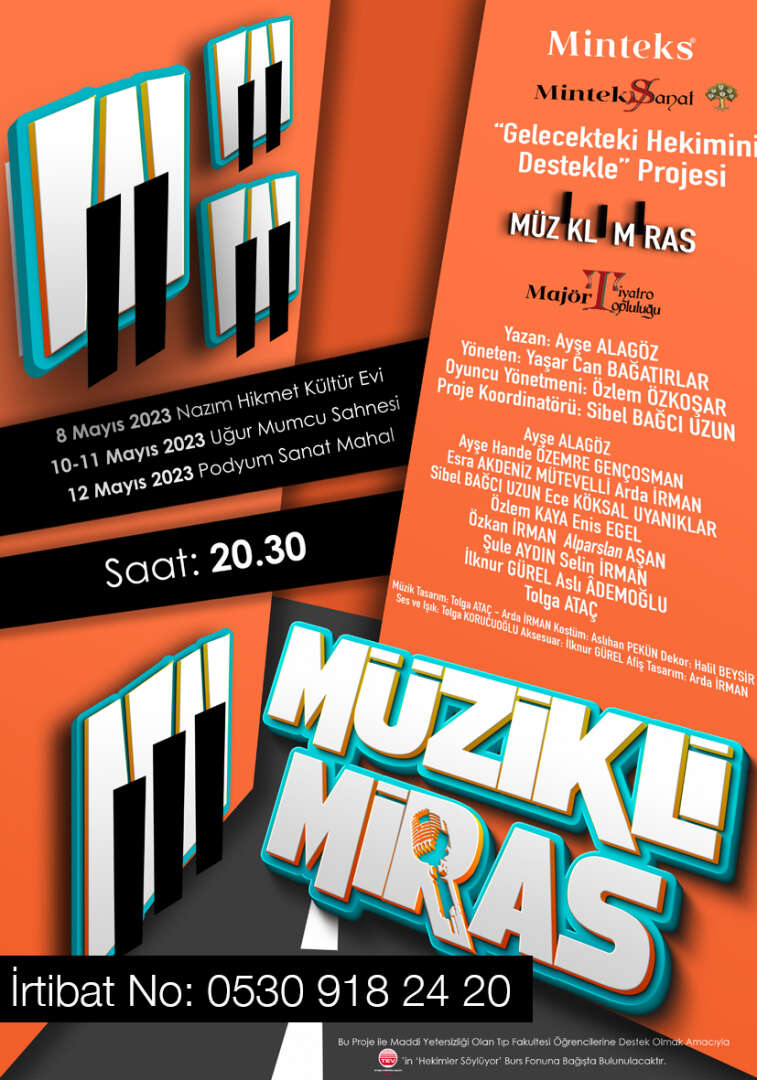 Sosyal sorumluluk projesi olarak geliştirilen “Müzikli Miras” tiyatro oyunu, “Gelecekteki Hekimini Destekle” diyerek yola çıktı. Minteks Sanat ev sahipliğinde Majör Tiyatro Topluluğu’nun gönüllü oyuncuları tarafından sahnelenecek oyun, yazar Ayşe Alagöz tarafından kaleme alınırken, Dr. Yaşar Can Bağatırlar tarafından yönetiliyor. Aralarında hekimlerin de bulunduğu projeyle, maddi yetersizliği olan tıp fakültesi öğrencilerine destek amacıyla Türk Eğitim Vakfı (TEV)’in “Hekimler Söylüyor” burs fonuna bağışta bulunulacak.