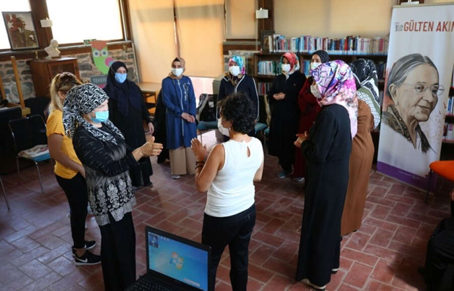 Nilüfer'deki kadın derneklerinin üyeleri ve kadınlara yönelik gerçekleştirilen atölyeye, pandemi nedeniyle sınırlı sayıda katılım sağlanıyor. Kadınların ilgiyle takip ettiği atölye, Görükle ve Demirci mahalleleriyle başladı.