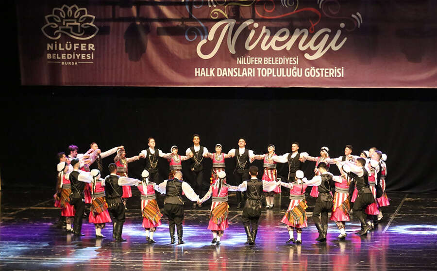 Nilüfer Belediyesi Halk Dansları Topluluğu’nun Anadolu’nun yanı sıra Balkanlar ve Kafkaslar’ın kültür mozağini yansıttığı “Nirengi” adlı gösterisi izleyenleri hayran bıraktı.