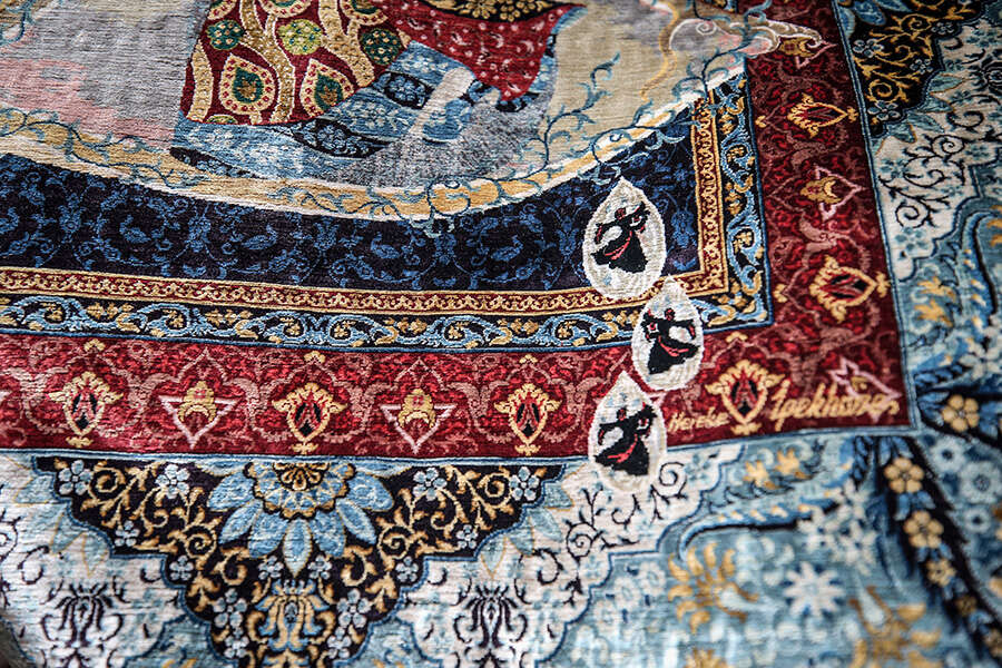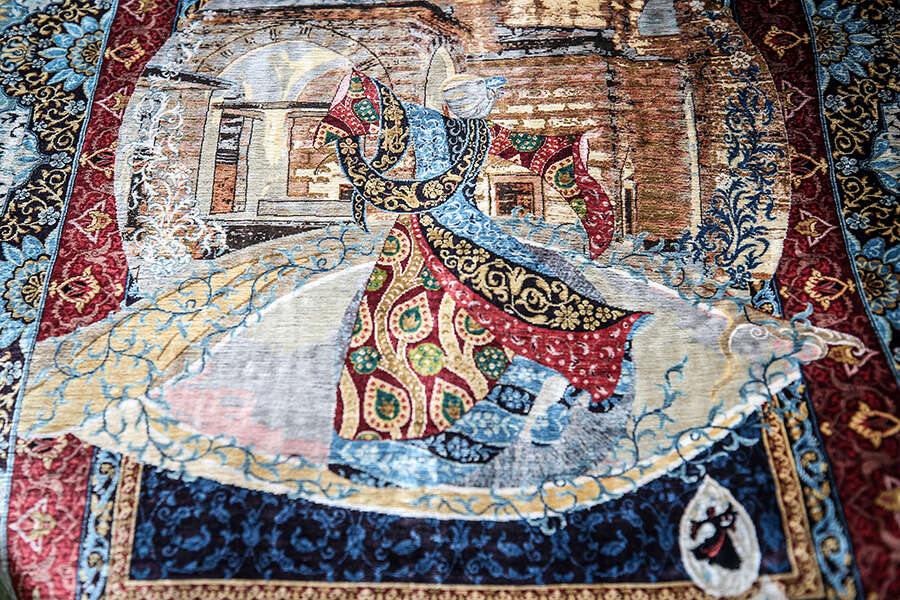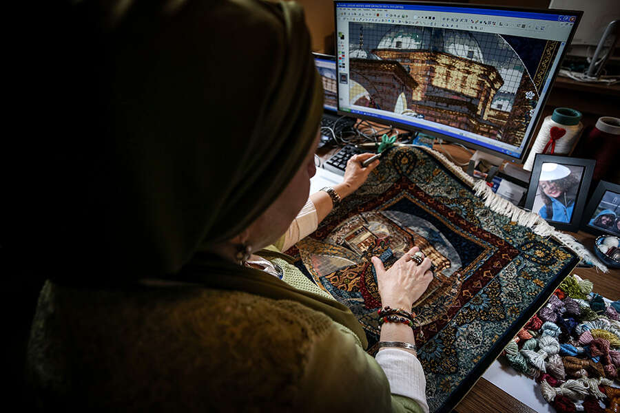 "Muradiye Külliyesi, Ulu Cami, Yeşil Türbe ve bütün tarihi mekanları gezip işime yarayacak, desen olabilecek, halıya aktarabileceğim bütün görsellerin fotoğraflarını çekmiştik. Caminin tavanları, kapı kolları, kapı detayları, nişler, bütün süslemeler, sandukanın örtüsü, aklınıza gelebilecek her şey. Giriyordum, bakıyordum, çok güzel desenler var. Yeşil Türbe ve Yeşil Cami muhteşem mesela. Osman Hamdi Bey de çok işlemiş 'Kaplumbağa Terbiyecisi' için. Ulu Cami'de de çok fazla detay var. Muradiye Külliyesi başlı başına ışıklı orada. Hep klasörler oluşturdum. Bursa'nın göz bebeği Şehzade Mustafa. Şehzade Mustafa Türbesi'nin fotoğraflarıyla da hikaye oluşturdum. Şu an Şehzade Ahmed ile ilgili çalışmalar yapıyorum. Sonra Gülbahar Hatun, Mükrime Hatun, İkinci Murad..."