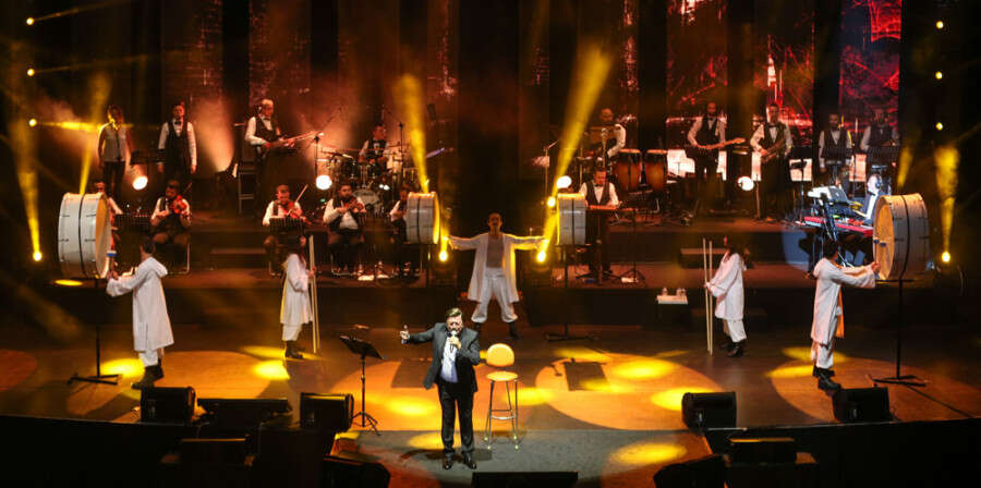 Bir davul gösterisinin de izlenime sunulduğu konserde ünlü sanatçıya, 14 kişilik bir orkestra ile 2 vokalist eşlik etti.