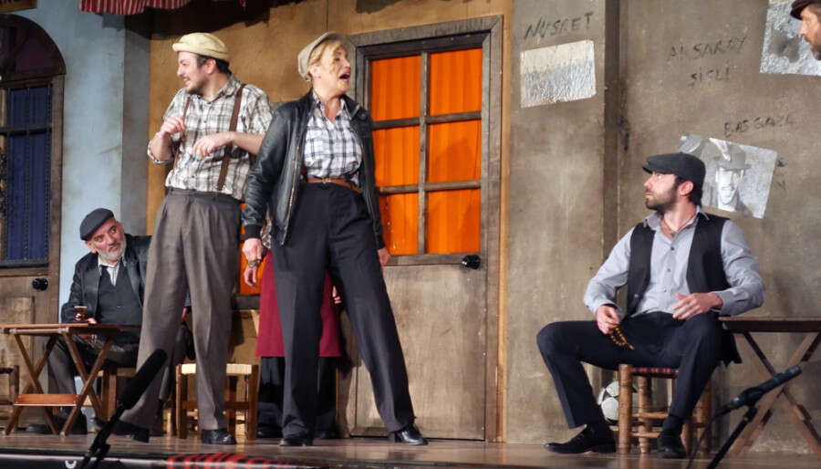 Tiyatro oyununda 1960'lı yıllarda Yeşilçam sahnelerinde ünlenen "Şoför Nebahat" karakterini Çiğdem Tunç canlandırdı.