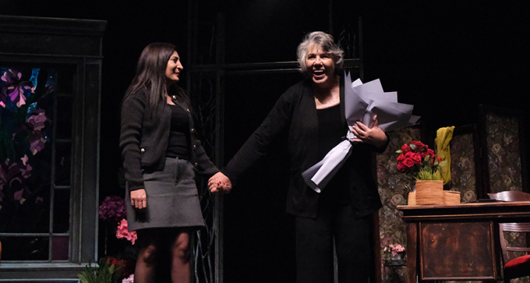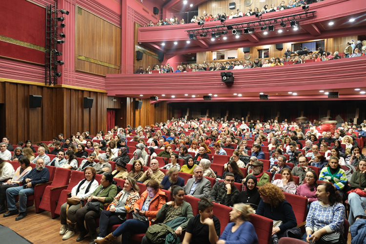 Oyunun sonunda seyirciler tarafından uzun süre ayakta alkışlanan Işıl Yücesoy’a, Büyükşehir Belediyesi Meclis üyesi Emel Duman tarafından çiçek takdim edildi.