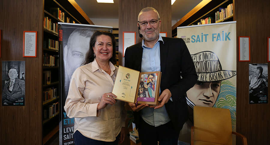 Söyleşiye katılan öğrencilere de Nilüfer Belediyesi Kütüphaneleri tarafından Sait Faik Abasıyanık’ın Seçme Hikayeler kitabı hediye edildi.
