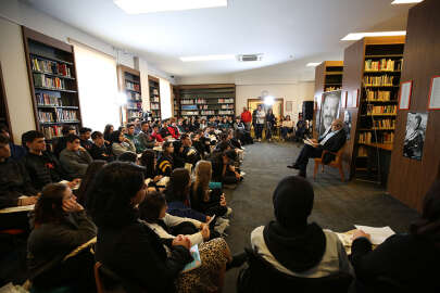 Hikayeyi keyifle dinleyen gençler, okumanın bitmesinin ardından Levent Üzümcü’ye hem usta yazar Abasıyanık ile ilgili hem de sanatçının kendi hayatıyla ilgili sorular yönelttiler.