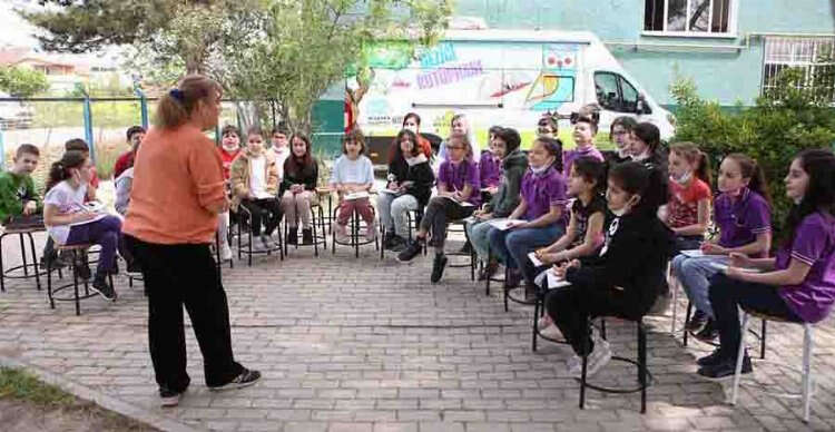 Nilüfer Belediyesi Kütüphaneleri çocukları öykü ve roman yazarlarıyla buluşturmaya devam ediyor. Nilüfer Belediyesi Gezici Kütüphane eşliğinde Akçalar ilköğretim Okulu’na gelen yazar Renan Özdemir, dördüncü sınıf öğrencileriyle keyifli bir söyleşi ve öykü atölyesi gerçekleştirdi.