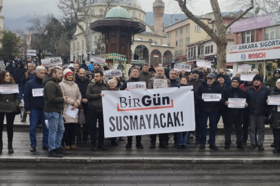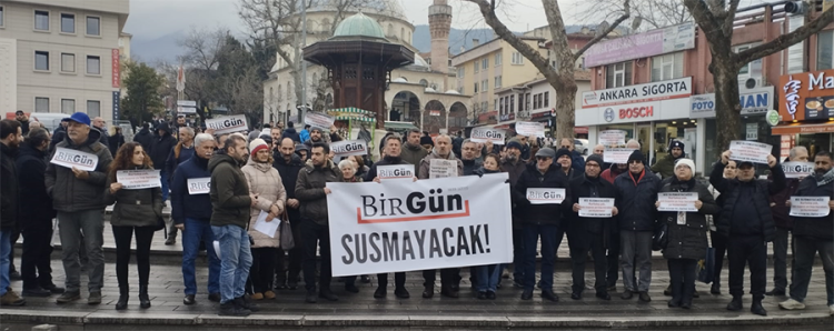 BirGün gazetesi yöneticilerinin gözaltına alınması Bursa’da protesto edildi. BirGün okur inisiyatifi adına konuşan Şermin Pank, “BirGün gerçekleri yazmaya devam edecek. BirGün susmaz, susturamazsınız.” dedi.