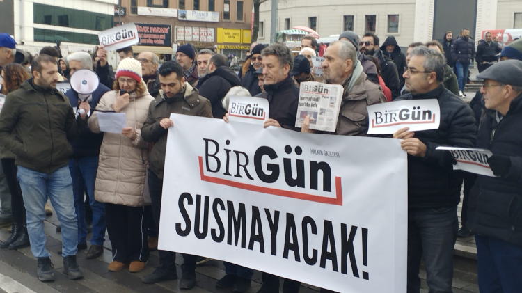 Açıklamada BirGün okur inisiyatifi adına konuşan Şermin Pank, “Biliyoruz ki bu yaşananlar; En ufak bir sese dahi tahammül edemeyen, tüm muhalefet kesimlerini sindirmek isteyen, ülkede korku iklimini hâkim kılmaya çalışan Saray rejiminin, yargı aracılığıyla basın ve toplum üzerinde de kurmak istediği hâkimiyetin son yansımasıdır.” dedi.