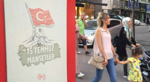 15 Temmuz Demokrasi Meydanı'ndaki sergide, darbe girişimi gecesi yaşananlarla ilgili yaygın ve yerel gazetelerin birinci sayfaları yer alıyor.