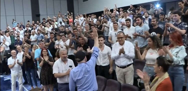 Öte yandan saat 11.00'de başlayacağı duyurulan söyleşi 12.00'de başlayınca bekleyenlerden bazıları tepki gösterdi.