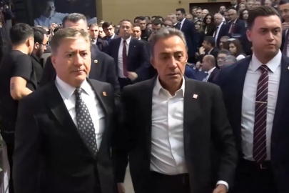 Kurultay salonunda Özel'in oturduğu bölüme gelen Şimşek, CHP Genel Başkanı'na sitem dolu hareketlerle yaşananları aktarırken, Özel'in Şimşek'i sakinleştirmeye çalıştığı görüldü.