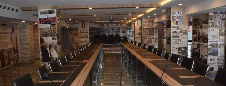 Cumhuriyet Halk Partisi Bursa İl Başkanlığı'nın toplantı salonunun duvarları, partinin 100 yıllık geçmişine de tanıklık eden fotoğraflarla "anı duvarı"na dönüştürüldü.