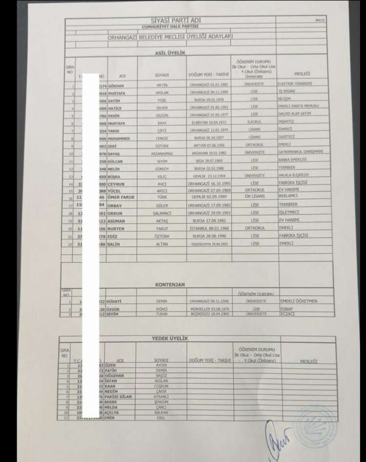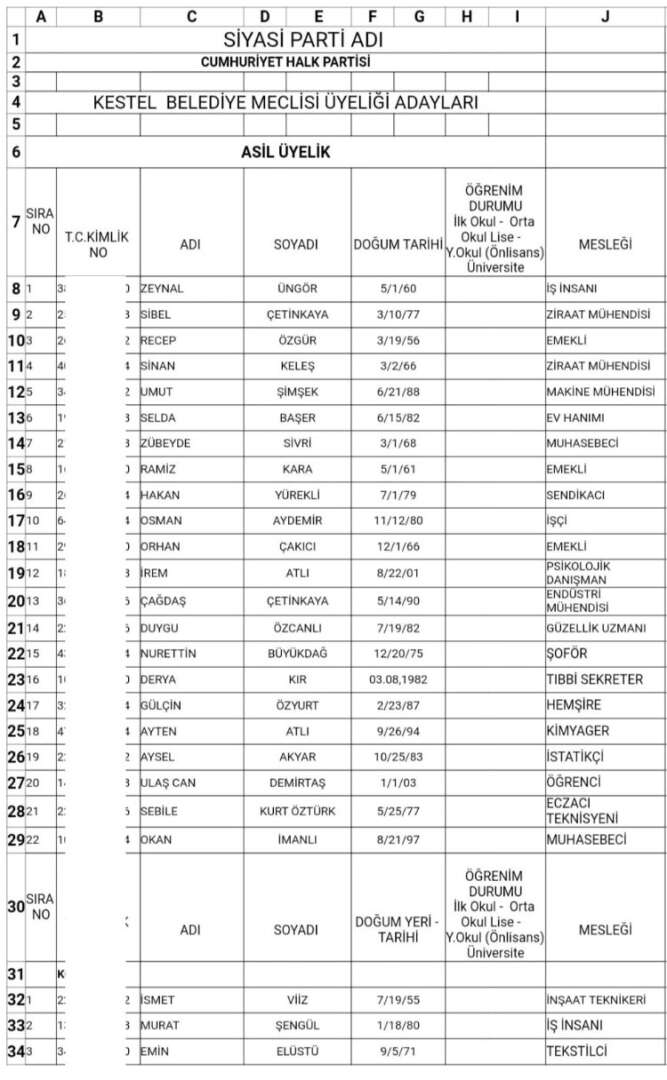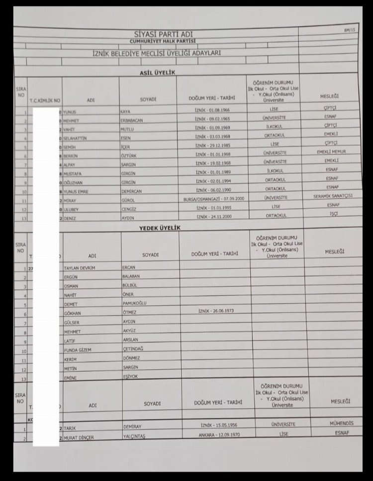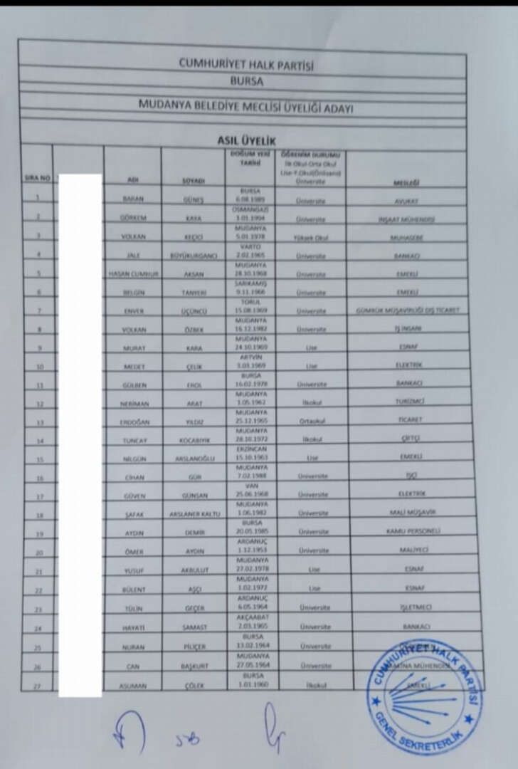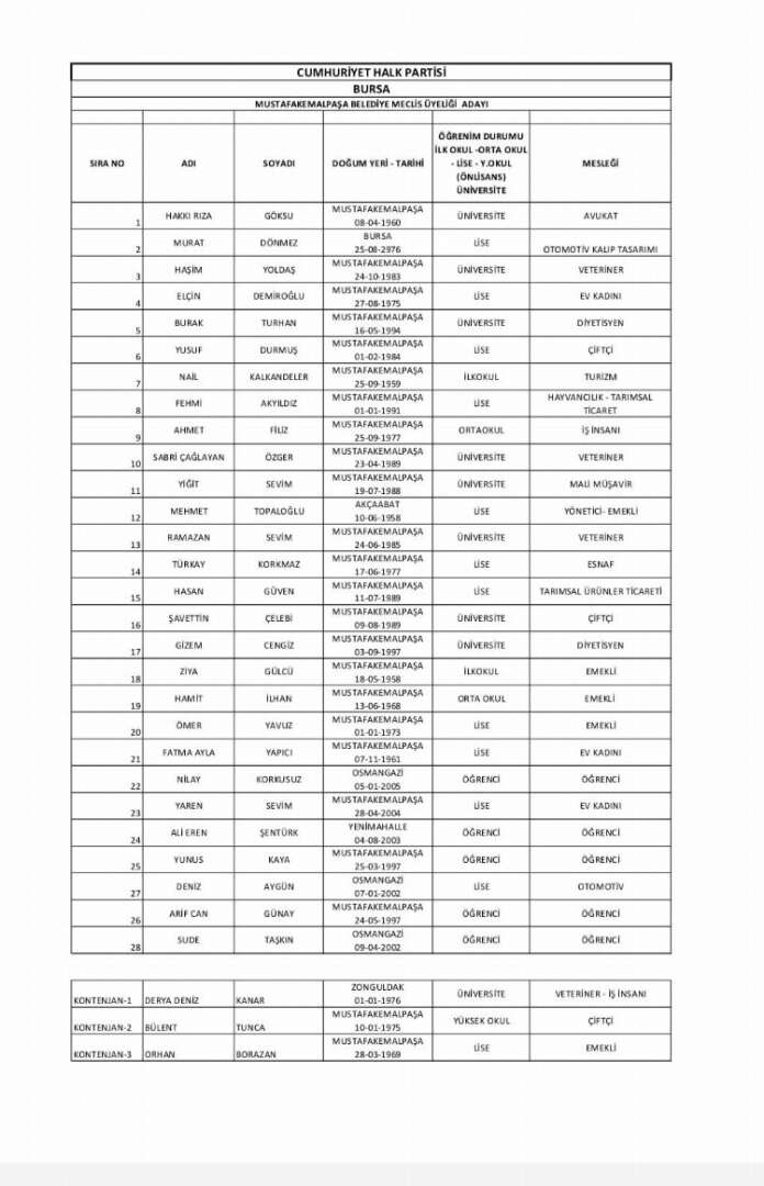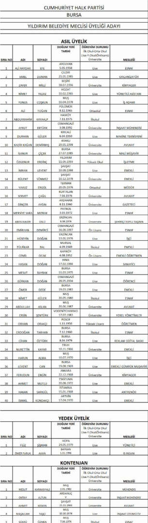 İlçe ilçe CHP'nin Belediye Meclis üye listeleri şöyle: