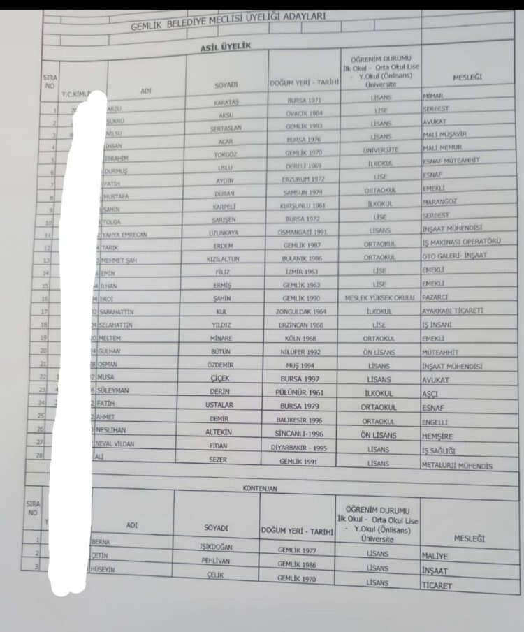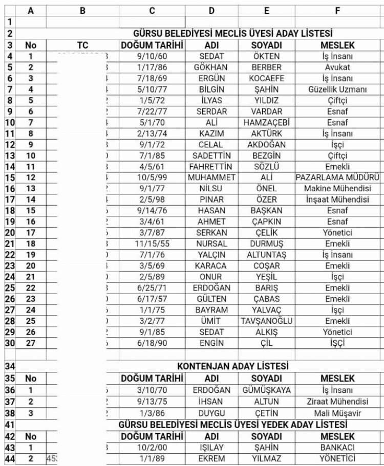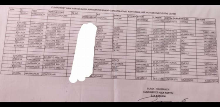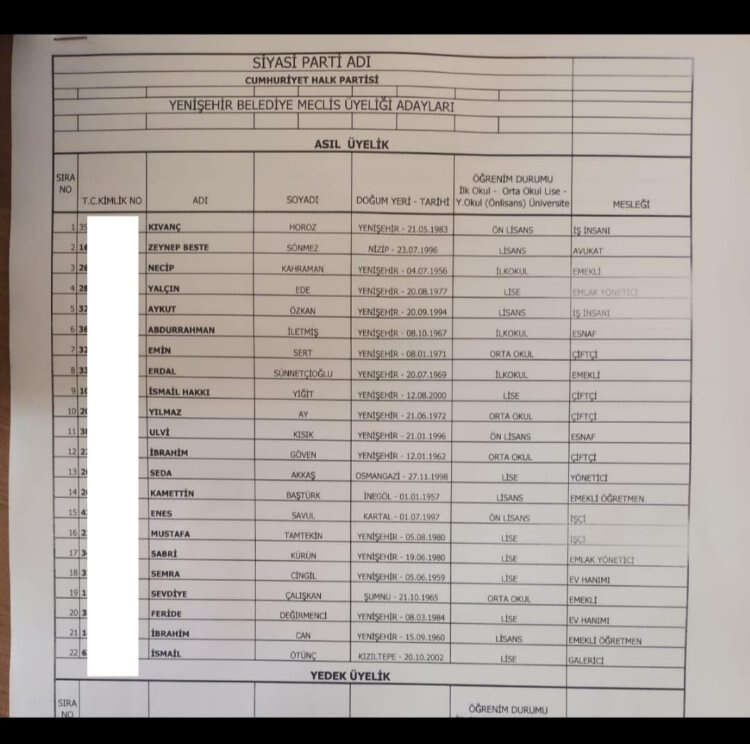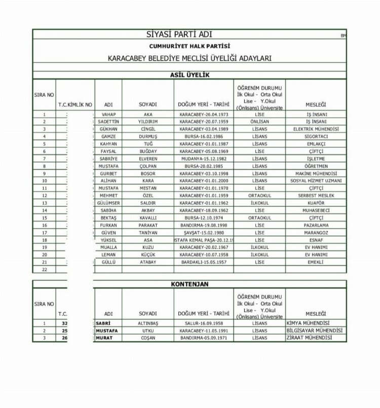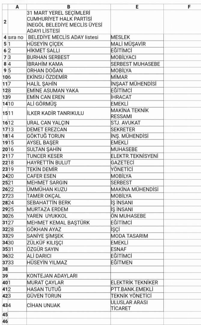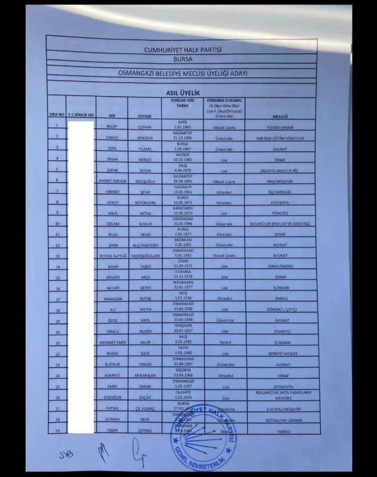 İlçe ilçe CHP'nin Belediye Meclis üye listeleri şöyle: