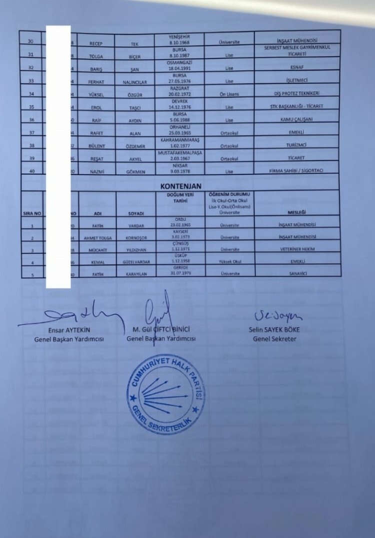 CHP Bursa'da Belediye Meclis üyesi adaylarını kesinleştirdi