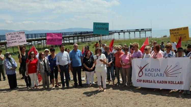 Cumhuriyet Halk Partisi (CHP) Bursa İl Kadın Kolları Başkanı Aysel Okumuş, bir yandan olası iklim krizi, kuraklık ve kıtlık tehlikesi artarken, bütün bunlar görmezden gelinerek doğa kaynaklarına karşı acımasız olmanın kabul edilemeyeceğini belirterek, suları çekilen İznik Gölü kıyısında basın açıklaması yaptı. 17 Haziran Dünya Çölleşme ve Kuraklıkla Mücadele Günü çerçevesinde İznik Gölü kıyısındaki Orhangazi piknik alanı iskelesinde gerçekleşen toplantıya CHP Orhangazi İlçe Başkanı Ender Teke, il-ilçe kadın kolları yöneticileri katıldı.