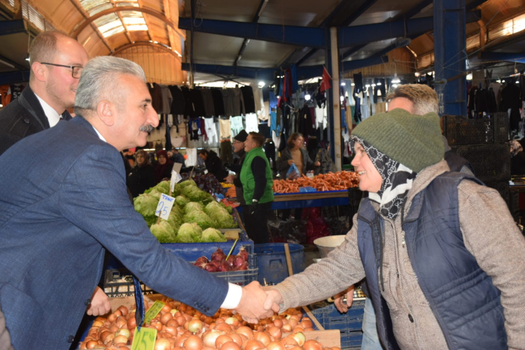Yeşiltaş’ın Karacabey’deki üçüncü durağı ise Semt Pazarı oldu. Yeşiltaş, semt pazarında pazarcı esnafı ile alışverişe çıkan vatandaşları dinledi. Emekli vatandaşlar düşük aylıklar ile pazar arabalarını dolduramadıklarını kaydederken, asgari ücretliler de alım gücünün gün geçtikçe düştüğüne dikkat çekti.