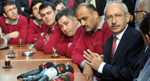 Kılıçdaroğlu, Bursa'da araç koltuğu üreten bir fabrikada işçilerle çay içerek sohbet etti ve işçilerin sorularını yanıtladı.