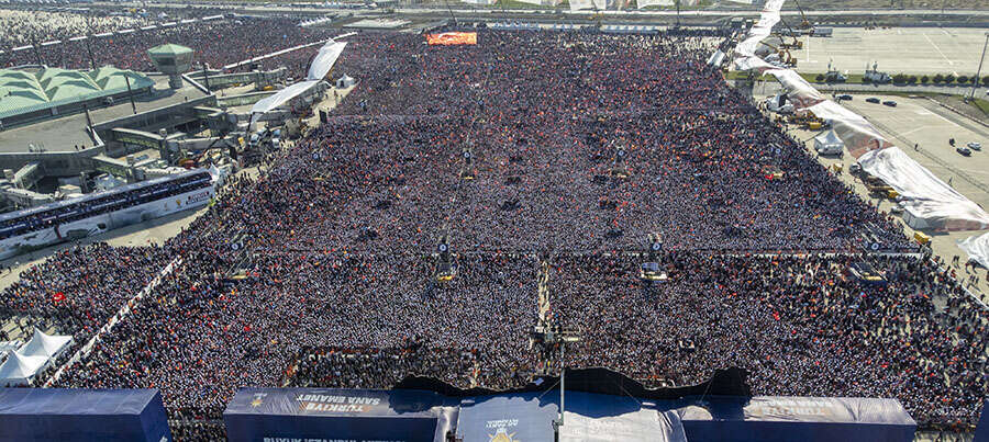Erdoğan, AK Parti'nin Atatürk Havalimanı Millet Bahçesi'nde düzenlediği ve büyük katılımla gerçekleşen İstanbul Mitingi'nde yaptığı konuşmada, mitinge resmi rakamlara göre 1 milyon 700 bin kişinin katıldığını söyledi. Erdoğan, "Hani o Avrupa'nın gazeteleri, dergileri var ya onlar şimdi burayı izliyorlar. Acaba Atatürk Havalimanı'nda ne oluyor? İşte burada, cevabı siz vereceksiniz." diye konuştu.