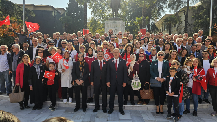 İYİ Parti Bursa İl Teşkilatı Cumhuriyet'in 101. yıldönümü kutlaması için Heykel'deki Atatürk Anıtı’nda biraraya geldi. Bursa Milletvekili Selçuk Türkoğlu'nun da hazır bulunduğu çelenk koyma ve saygı duruşunun yapıldığı kutlamaya İYİ Partililer yoğun katılım gösterdi.