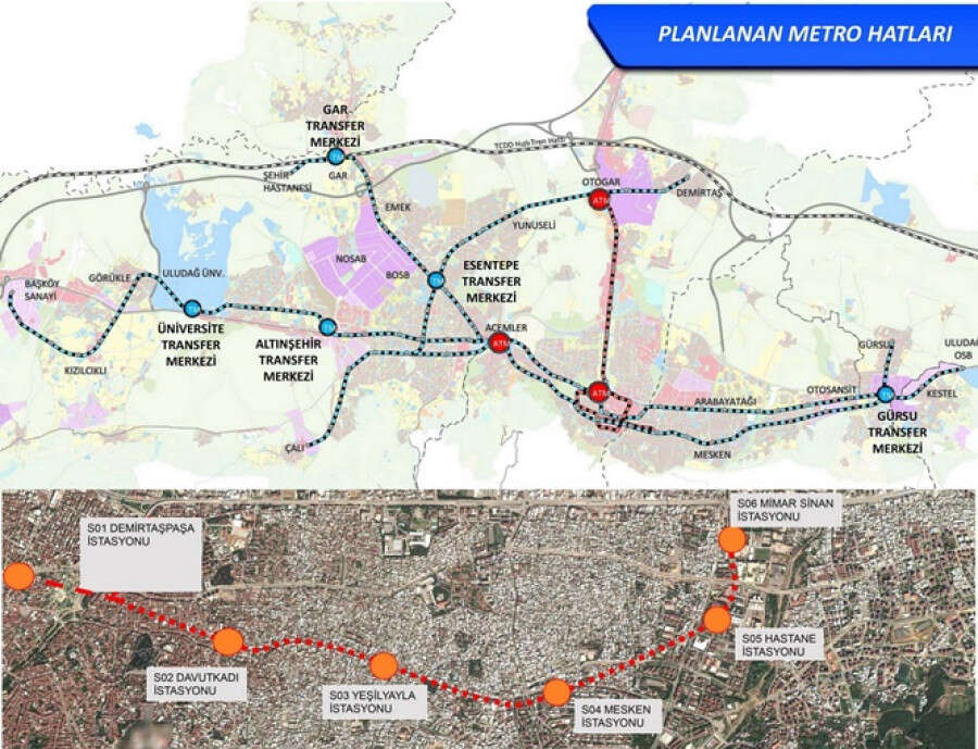 "2017'nin ağustos ayı başlarında Recep Altepe basın bülteni yayınladı. Demirtaşpaşa İstasyonu'ndan başlayıp Davutkadı-Yeşilyayla-Mesken-Şevket Yılmaz Hastanesi'ndan geçip Mimar Sinan İstasyonunda sona erecek 6.5 kilometrelik bir hat planladığını duyurmakla kalmadı, bölgede 75-250 metre aralıklarla yapılan zemin etüdü çalışmalarından fotoğraflar yayınladı ama akabinde görevden alındı. Görevden neden el çektirildiği bugüne dek açıklanmayan Altepe'nin yerine atanan Alinur Aktaş, Büyükşehir kasasının tamtakır olduğunu, 1.5 milyar liraya mal olacağı hesaplanan ve Yıldırım Metrosu diye anılan bu projeyi yapamayacağını Cumhurbaşkanına da söylediğini anlattı. Cumhurbaşkanının siz devam edin sözü üzerine Altyapı Genel Müdürlüğü ile çalışmalara devam ettiklerini aktardı. Arşivde duruyor o açıklamalar."