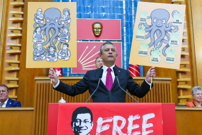 CHP Genel Başkanı Özgür Özel, partisinin grup toplantısında, Cumhurbaşkanı Recep Tayyip Erdoğan’ın İBB soruşturmaları hakkında yaptığı ahtapot benzetmesine yanıt verdi. Kürsüden ahtapot görseli gösteren Özel, “Tayyip Bey sürekli kendi kendine bir ahtapot görüyor. Sürekli ahtapot anlatıyor. Ahtapotun kollarını arıyorsan işte Fatih Belediyesi, işte Bayrampaşa Belediyesi, öbür kolunda Bahçelievler Belediyesi. 40 haramiler ahtapotun elinde. Kuzey Kıbrıs Türk Cumhuriyeti (KKTC) soygunu. Depremde çadır satan Kızılay’ın vurgunu. 17-25 Aralık. Yunus Emre Vakfı soygunu. Dezenfektan satan bakan da ahtapotun bir kolunda; TÜRGEV, Ensar ikisi birden ahtapotun bir kolunda. Ahtapot meraklılarına gösterelim: Yeni Şafak hazırla manşeti, A Haber ‘son dakika’ yaz: ‘Aranan ahtapot bulundu. Reis’in tarif ettiği ahtapot Özgür Özel‘in ellerinde’” dedi.