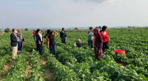 Heyet, daha sonra tarlada çalışan kadınları ziyaret etti. Kadınlar, sabah 8:00'den akşam 18:00'e kadar çalıştıklarını ve günlük 90 TL kazandıklarını belirterek, yol ve yemek giderlerinin de kendilerine ait olduğunu söyledi. Üniversite öğrencisi bir kadın yaşlı bakımı okuduğunu, geçimini tarlada çalışarak sağladığını söyledi. Bir başka genç kadın ise "Yokluk yüzünden okulu bırakmak zorunda kaldım. Buradan kazandığım parayla da geçinemiyorum" dedi.