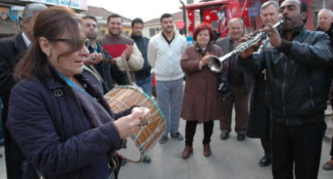 Seçim çalışmaları nedeniyle Yenişehir'e gelen CHP Bursa Milletvekili Sena Kaleli, traktöre bindi, roman mahallesinde çiftetelli oynayıp müzisyenlere para verdi